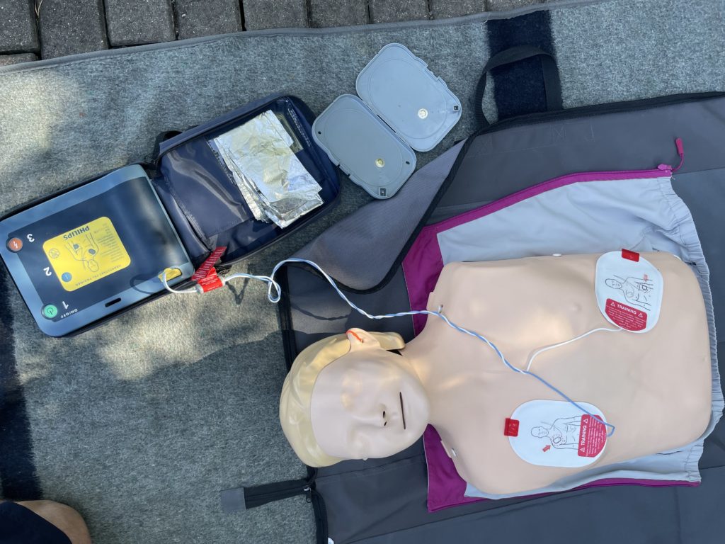 Im praktischen Teil wurden die Durchführung der HLW an der Reanimationspuppe (Anne) die Anwendung eines AED und die Gabe von Sauerstoff an den verunfallten Taucher geübt.