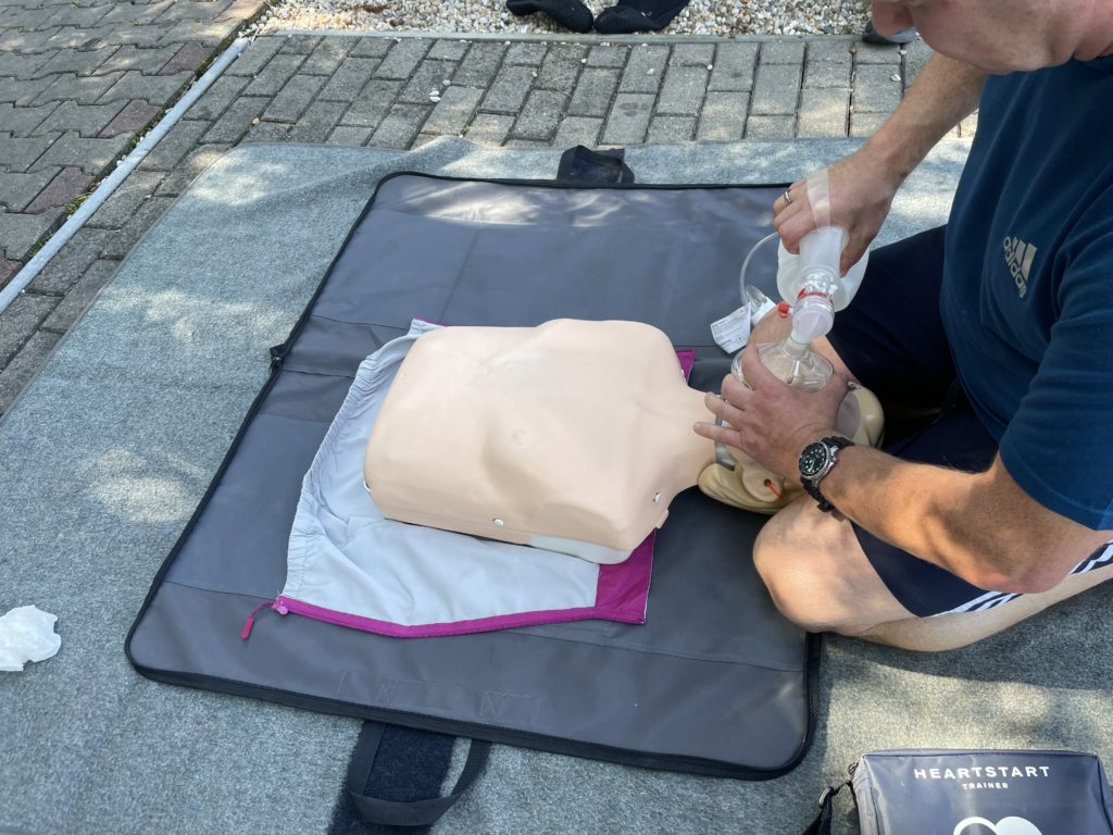 Am vergangenen Wochenende fand ein Aufbaukurs zur Herz-Lungen-Wiederbelebung (HLW) im Rahmen der Tauchausbildung zum DTSA 2-Stern Taucher auf der Tauchbasis Sandersdorf statt. Insgesamt nahmen sechs Teilnehmerinnen und Teilnehmer an der Schulung teil, die unter der Leitung des TL2 Dirk Preuß gemäß den Vorgaben des VDST durchgeführt wurde.
