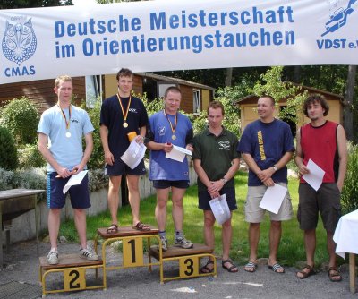 In der schwierigsten Disziplin MONK (Mannschaftsorientierung nach Karte) müssen die zu absolvierenden Kurse mit Hilfe einer Karte, Winkelmesser und Lineal von dem Sportlerpaar unter Wasser berechnet werden. Beide Delitzscher Damenteams zeigten dabei Nervenstärke. Heike Preuß und Anne Theiß gewannen zum dritten Mal in Folge den Meistertitel in dieser Disziplin knapp gefolgt von Yvonne Vogel und Karin Babetzki auf Platz zwei. Platz drei ging an das Rostocker Damenteam. Die Delitzscher Herren Dirk Preuß und Daniel Sonnekalb führten lange Zeit die Konkurrenz an, wurden aber von dem um neun Sekunden schnelleren Team aus Brandenburg auf Platz zwei verwiesen. Die Bronzemedaille ging erneut nach Rostock. Auch die Delitzscher männliche Jugend mit Felix Schwarze und Mathias Berg konnten sich in dieser Disziplin über die Bronzemedaille freuen.